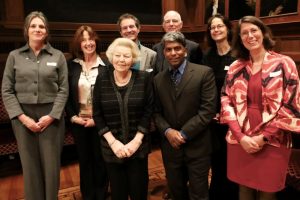 (Foto: De leden van de stuurgroep van In vrijheid verbonden met prinses Beatrix. Van links naar rechts en van boven naar beneden: Monique Rietveld (Boeddhistische Unie Nederland), Caroline Mutsaars (Progressief Joodse Gemeente), Robbert Bodegraven (Humanistisch Verbond), Coen Wessel (Protestantse kerken Nederland), Marie-Heleen Lüchinger (RKK), Prinses Beatrix, Bikram Lalbahadoersing (Hindoe Raad Nederland), Martine Versteeg (Missie Nederland)
