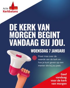 Actie Kerkbalans 2026 loopt van 10 tot en met 24 januari 2026. Het is dé actie waarmee kerkleden in heel Nederland worden gevraagd om een financiële bijdrage toe te zeggen voor hun plaatselijke parochie of gemeente. De slogan van de Actie Kerkbalans is ‘Geef vandaag voor de kerk van morgen.’ Want kerken willen ook voor de generaties die komen van betekenis zijn. Wanneer kerkleden vandaag geven, kan de kerk ook in de toekomst blijven doen waar ze al eeuwenlang voor staat: omzien naar elkaar.