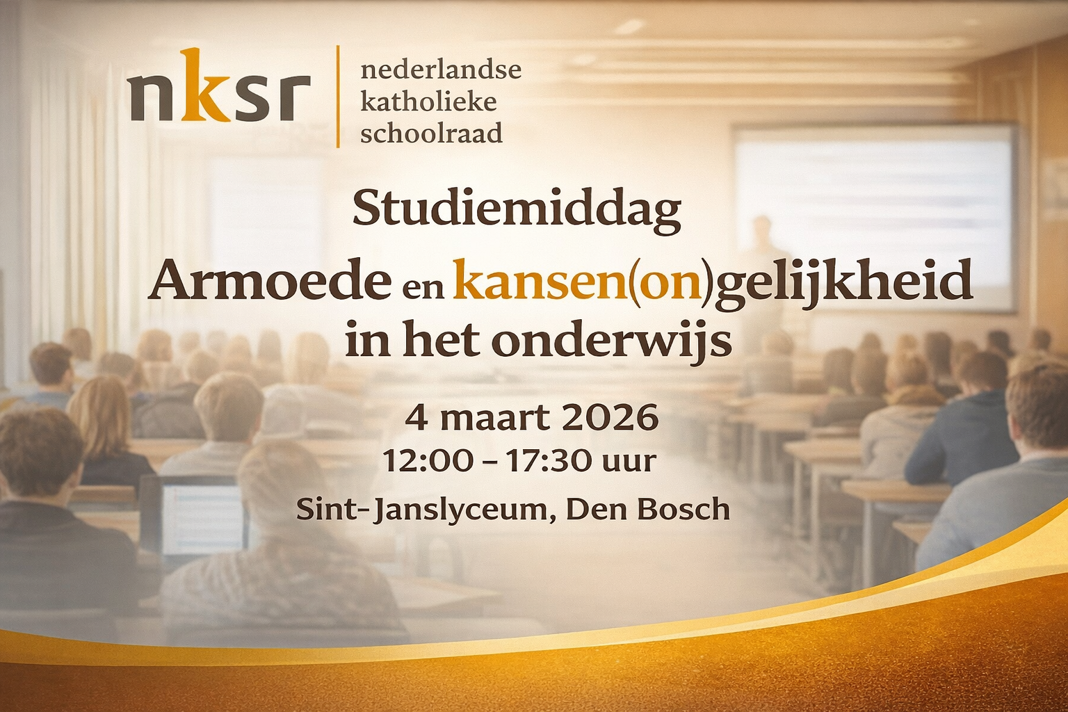 Op 4 maart organiseert de Nederlandse Katholieke Schoolraad (NKSR) een inspirerende studiemiddag op het Sint-Janslyceum in ’s-Hertogenbosch rond het actuele en urgente thema ‘Armoede en kansen(on)gelijkheid in het onderwijs’. De studiemiddag wordt geopend met een inleiding door Mgr. Hendriks.